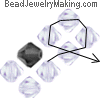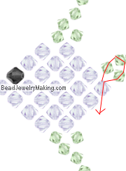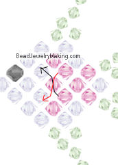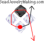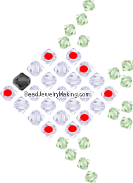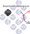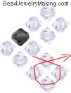 - Add four 4mm crystal bicones (make sure the third crystal added is black - for the eye) at the center of the string and crisscross through the last added crystal to form a crystal circle as shown.